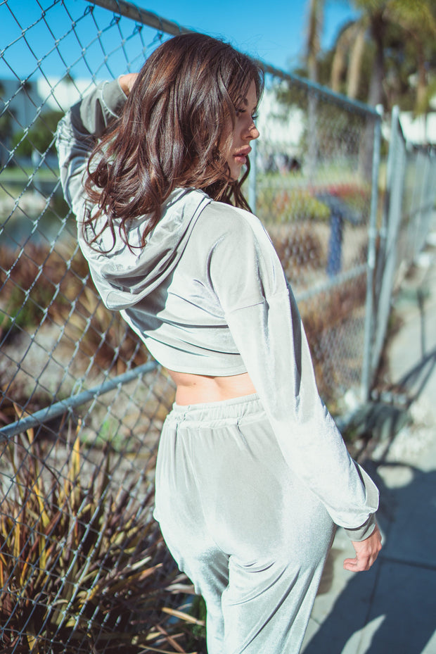 features super sparkly glittery lurex, padded shoulders, a thong snap closure, and a hood for added sass.